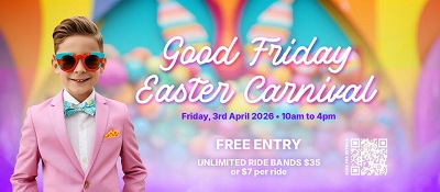 A large-scale community carnival featuring rides, food stalls and family entertainment for the Easter weekend.