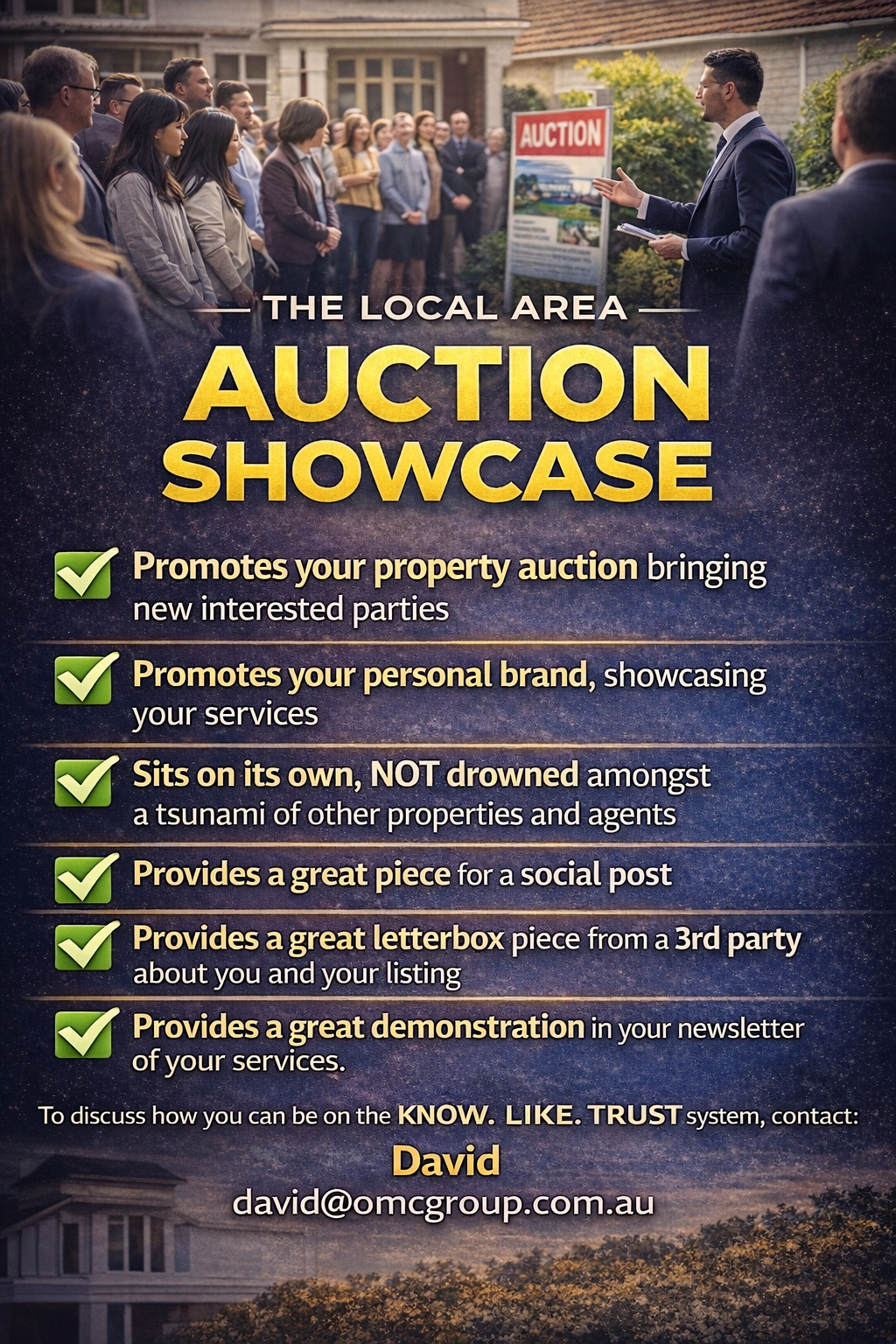 It is a story written about a property you are taking to auction, including promotion across the relevant area to the relevant demographic.
